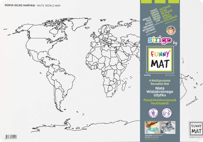 Biała mata Strigo by Funny Mat Mapa Świata Państwa 48 x 33,5 cm + flamastry