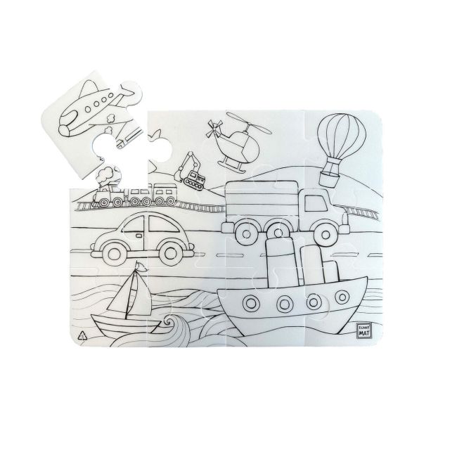 Białe Puzzle Strigo by Funny Mat Puzzle Pojazdy 44 x 37 cm + flamastry