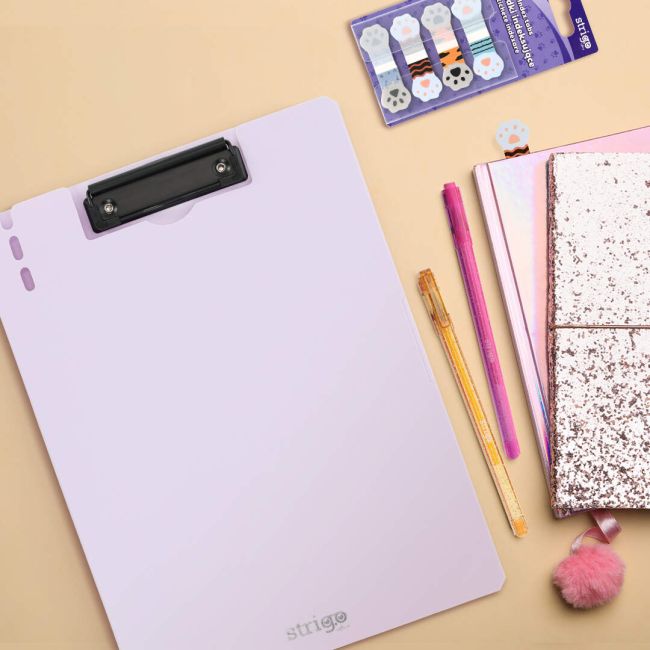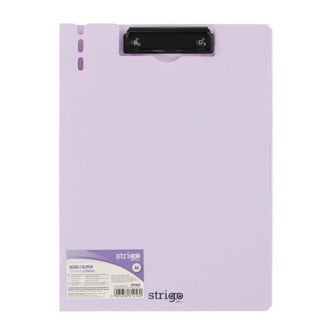 Szukasz praktycznego i stylowego rozwiązania do zarządzania dokumentami w biurze lub szkole? Odkryj deskę z klipem Strigo w eleganckim liliowym kolorze, która łączy funkcjonalność z estetyką, spełniając wszystkie Twoje potrzeby!