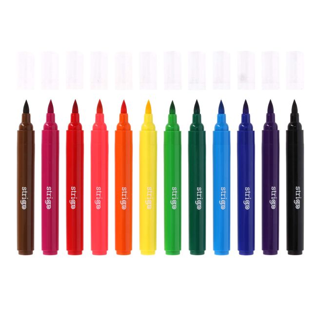 Flamastry Strigo Jumbo z końcówką brush 12 kolorów