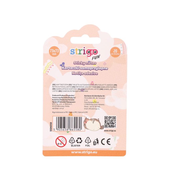 Karteczki samoprzylepne papierowe STRIGO FUN 73x73mm 20 kartek pomarańczowe