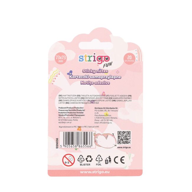 Karteczki samoprzylepne papierowe STRIGO FUN 73x73mm 20 kartek różowe
