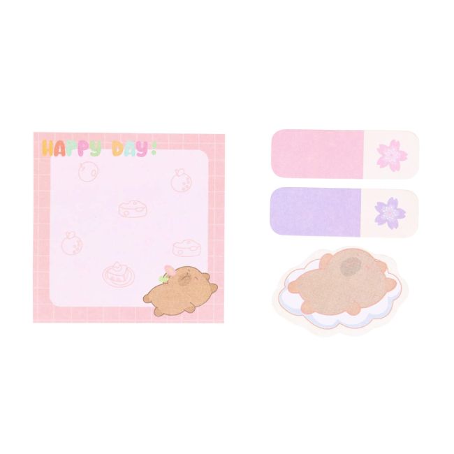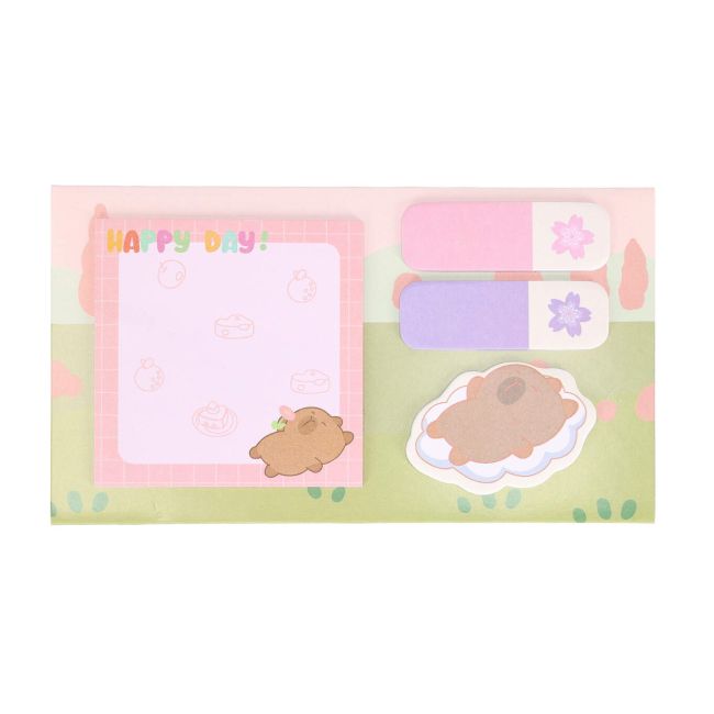Karteczki samoprzylepne STRIGO 4 sztuki w mixie kolorów ,,Kapibara z kwiatkiem''