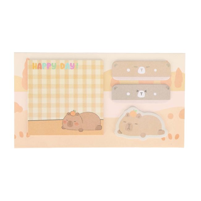 Zestaw stojących karteczek samoprzylepnych STRIGO z serii śpiąca Kapibara to połączenie funkcjonalności i słodkiego designu, które rozświetli każde biurko.