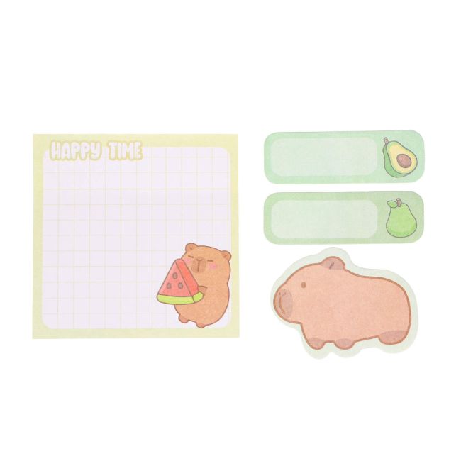 Karteczki samoprzylepne STRIGO 4 sztuki w mixie kolorów ,, Kapibara z arbuzem''