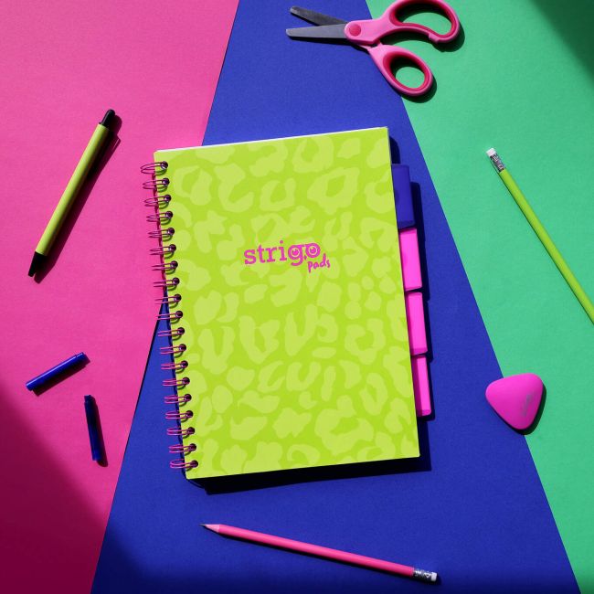 Pokaż swoją indywidualność i wybierz kołozeszyt, który inspiruje do działania! Z Kołozeszytem Strigo Pads w neonowym zielonym kolorze notowanie staje się przyjemnością!