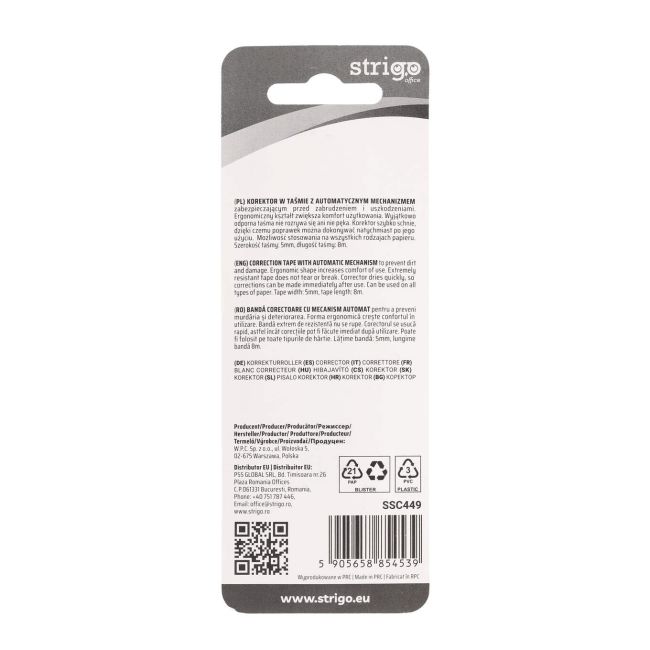 Niezależnie od rodzaju papieru, nasz korektor poradzi sobie z każdym zadaniem, a jego kompaktowy rozmiar i biały kolor sprawiają, że idealnie pasuje do szkolnego piórnika.