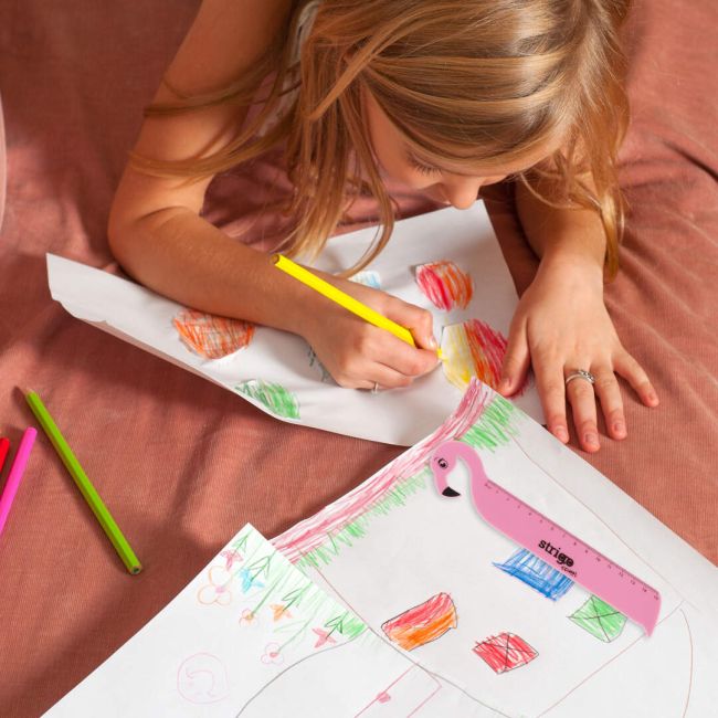 Poszukujesz trwałych i bezpiecznych przyborów szkolnych? Linijka Strigo w kształcie flaminga przyciągnie wzrok każdego ucznia.
