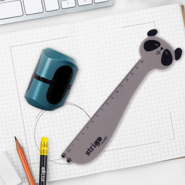 Poszukujesz trwałych i bezpiecznych przyborów szkolnych? Linijka Strigo w kształcie pandy przyciągnie wzrok każdego ucznia.