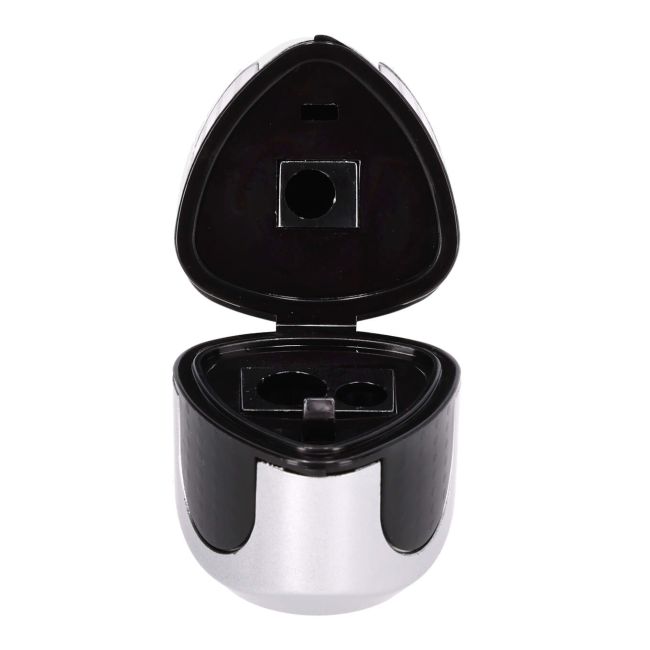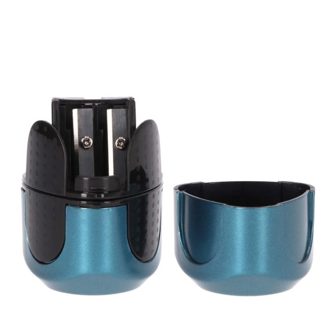 Metaliczna temperówka Strigo na trzy grubości ołówków i kredek z pojemnikiem