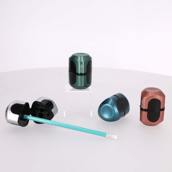 Odkryj metaliczną temperówkę Strigo, która rewolucjonizuje ostrzenie ołówków i kredek.