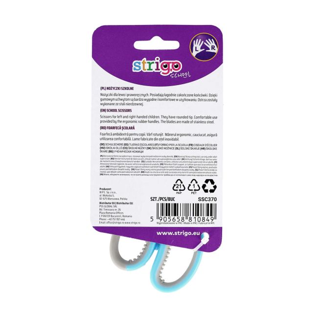 - Uniwersalna Konstrukcja: Nożyczki Strigo są odpowiednie zarówno dla praworęcznych, jak i leworęcznych uczniów, co czyni je idealnym narzędziem do nauki.