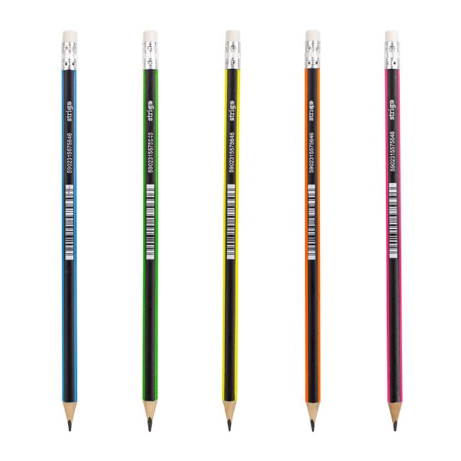 Ołówek STRIGO HB w Kolorowe Paski z Gumką