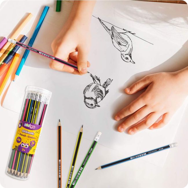 Ołówek STRIGO HB w kolorowe paski jest nie tylko estetyczny, ale także praktyczny, ponieważ łatwo się go temperuje. Idealnie nadaje się do codziennego użytku, zarówno w szkole, jak i w pracy biurowej.