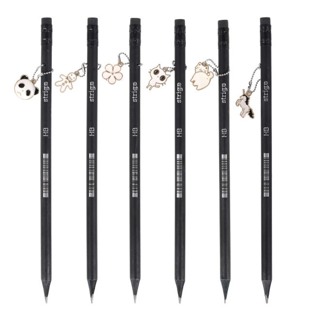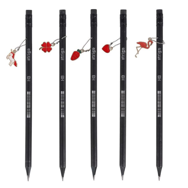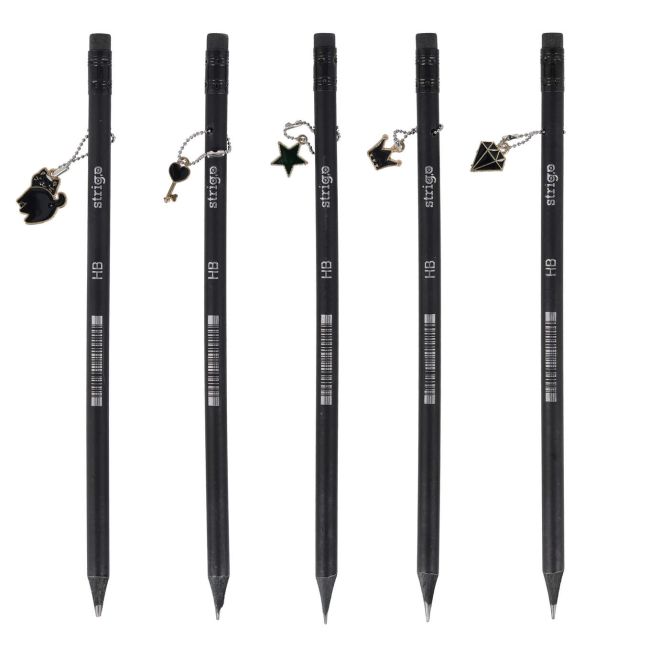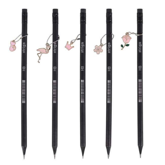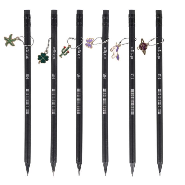 Odkryj Czarne ołówki Strigo z zawieszkami i gumką – doskonałe narzędzie do pisania, rysowania i kreślenia, które z pewnością stanie się ulubionym wyborem każdego ucznia!
