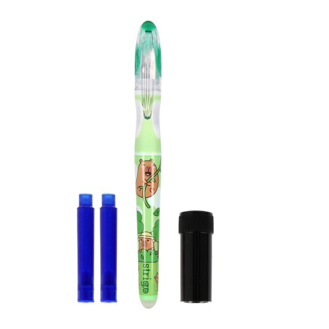 Pióro dla dzieci do nauki pisania, wymazywalne Strigo ze stalówką z serii Kapibara zielone