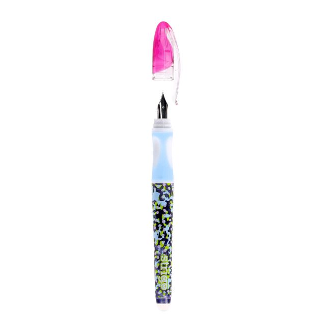 Dzięki gumowemu, profilowanemu uchwytowi, pióro szkolne wymazywalne zapewnia prawidłowe ułożenie dłoni, co ułatwia naukę pisania. Lekka i ergonomiczna obudowa sprawia, że ręka się nie męczy, a stalówka z irydem pozwala na miękkie pisanie bez plam.