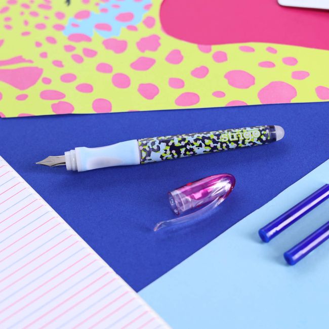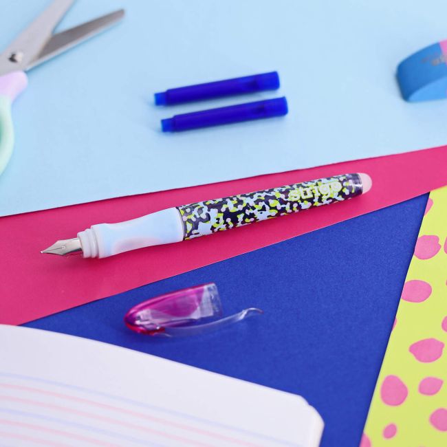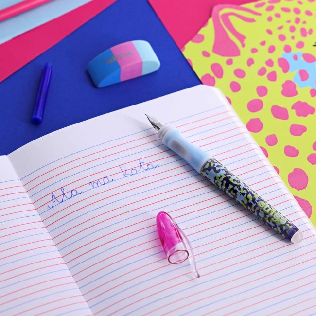 Jest to pióro bezpieczne dla dzieci, które nadaje się zarówno dla osób praworęcznych, jak i leworęcznych. Produkt oferuje łatwą i intuicyjną wymianę naboi, co czyni go doskonałym piórem do nauki pisania.