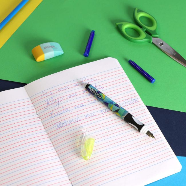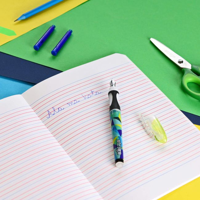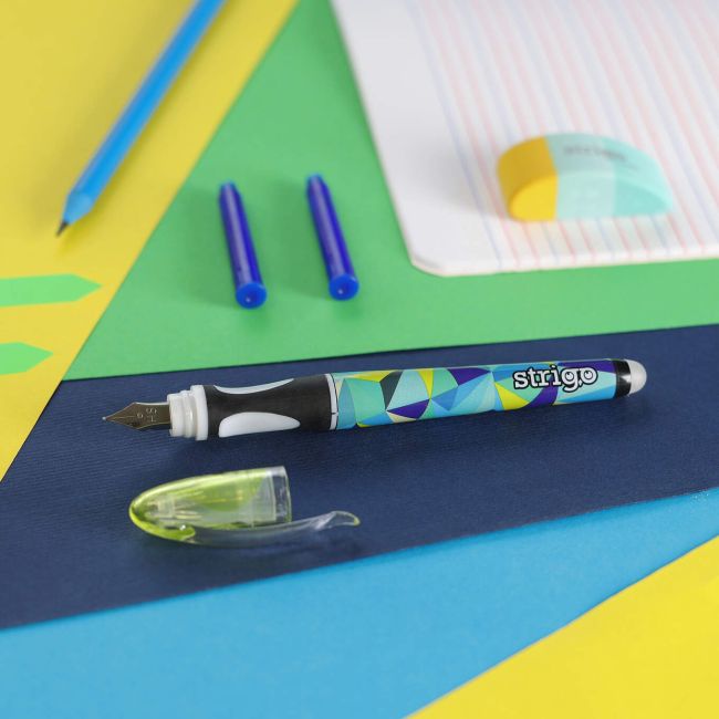 Pierwsze wymazywalne pióro ze stalówką marki Strigo z kolekcji Geometric to idealny wybór dla dzieci uczących się pisać.