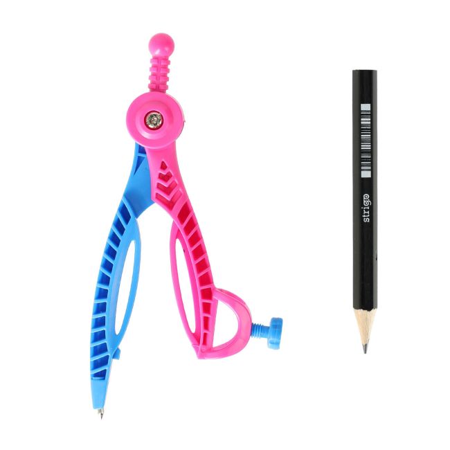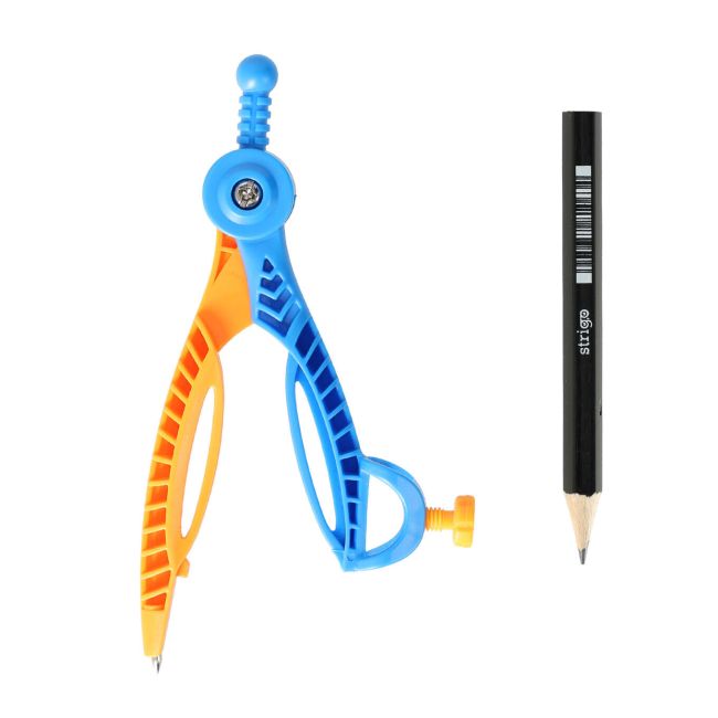 Plastikowy cyrkiel Strigo z ołówkiem w mixie kolorów
