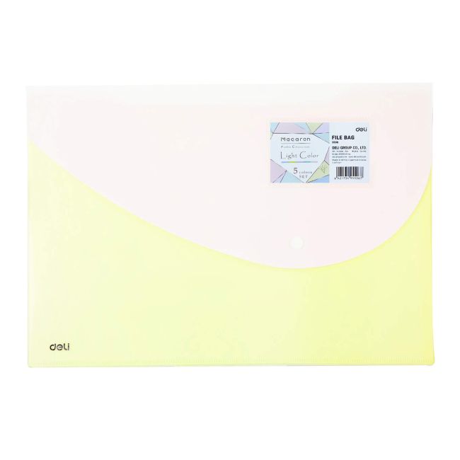 Teczka kopertowa 5506_YELLOW Deli na zatrzask z serii pastelowej Macaron, to praktyczne rozwiązanie do przechowywania dokumentów.