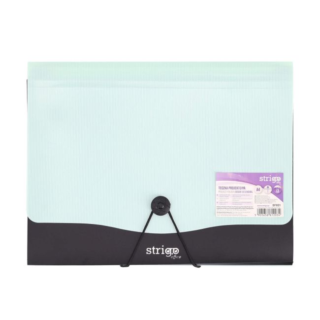 - Praktyczne Zabezpieczenie: Miętowa teczka wyposażona jest w kolorową klapę, zamykaną na gumkę i guzik, co zapewnia wygodę i bezpieczeństwo użytkowania.