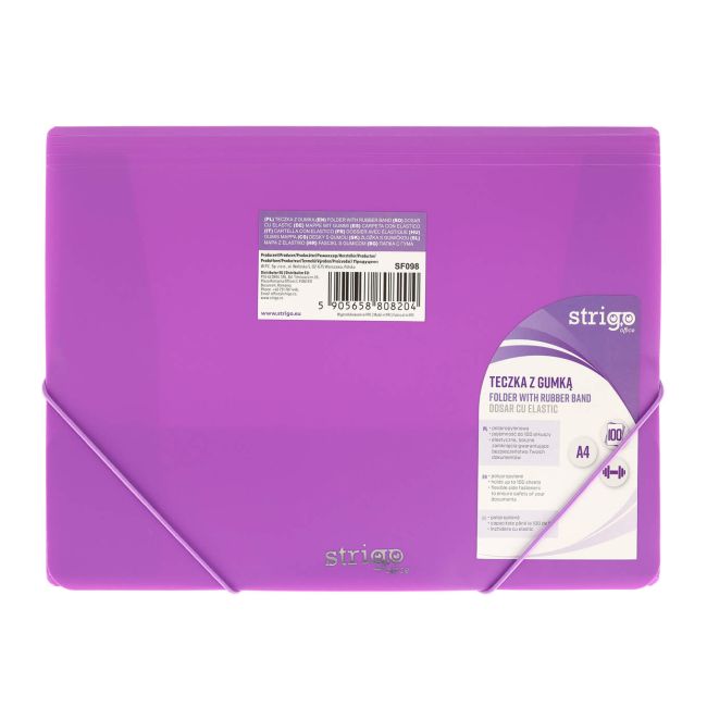 Teczka z gumką PP A4 STRIGO, neonowa fioletowa
