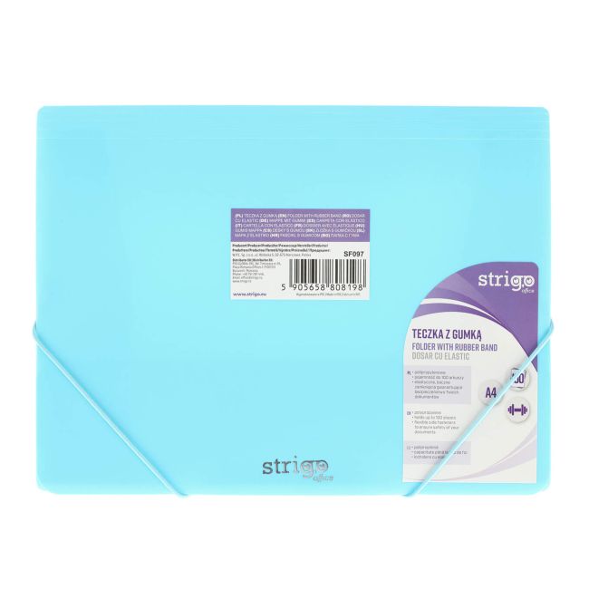 Teczka z gumką PP A4 STRIGO, neonowa niebieska