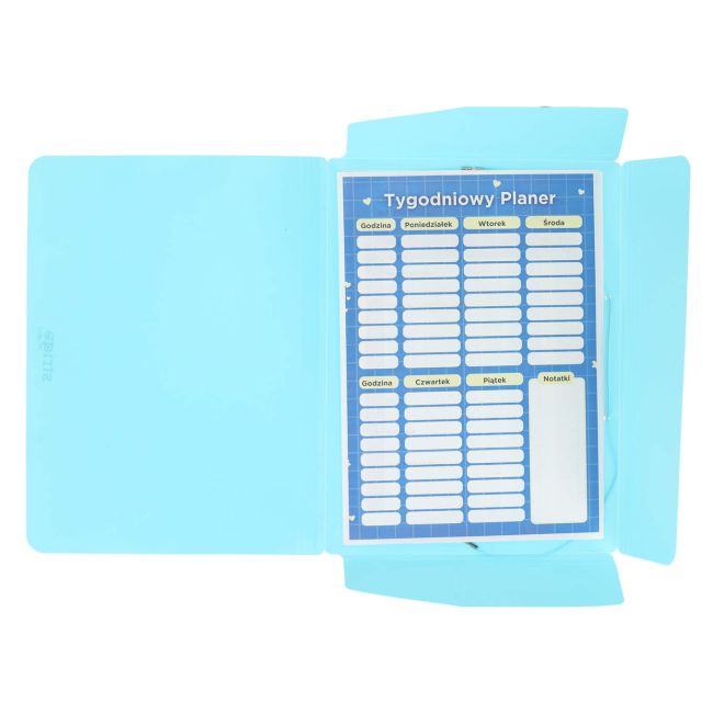 - Elastyczne zamknięcie: Wytrzymała gumka zabezpiecza zawartość, oferując pewność, że Twoje prace są bezpieczne.
