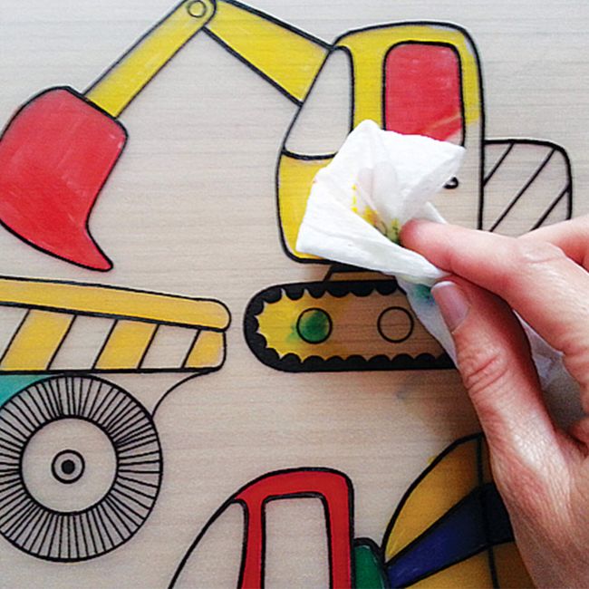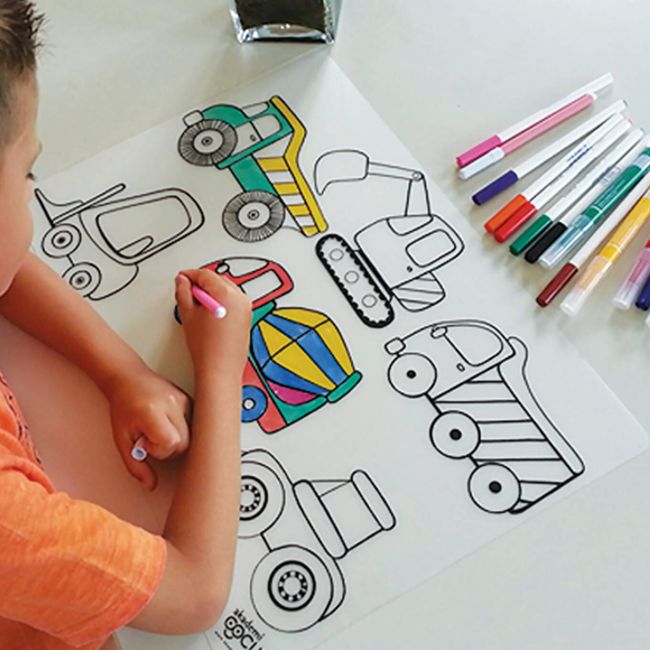 Twoje dziecko może kolorować je flamastrami na bazie wody i dowolnie zmieniać kolory, a następnie łatwo je wyczyścić przy pomocy mokrej szmatki lub pod bieżącą wodą.