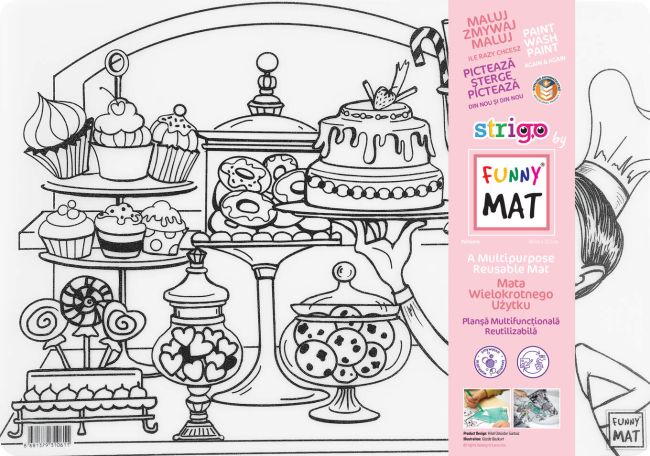 Transparentna mata Strigo by Funny Mat Cukiernia 48 x 33,5 cm + flamastry