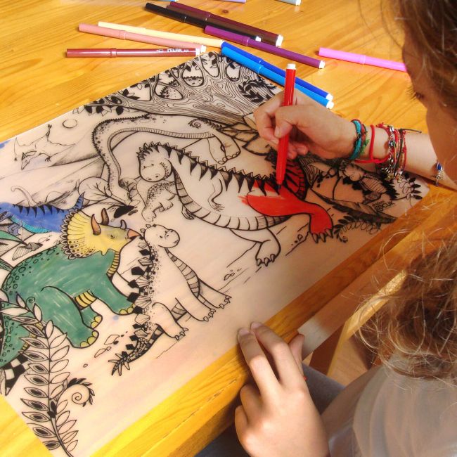 Twoje dziecko może kolorować je flamastrami na bazie wody i dowolnie zmieniać kolory, a następnie łatwo je wyczyścić przy pomocy mokrej szmatki lub pod bieżącą wodą.