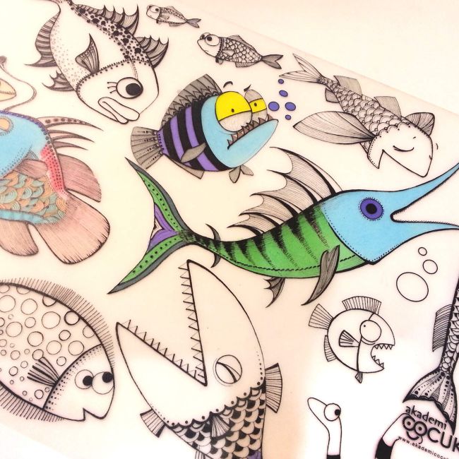 Transparentna mata Strigo by Funny Mat Piranie 48 x 33,5 cm + flamastry