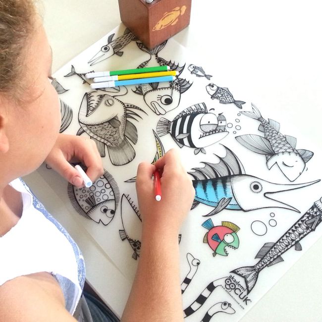 Twoje dziecko może kolorować je flamastrami na bazie wody i dowolnie zmieniać kolory, a następnie łatwo je wyczyścić przy pomocy mokrej szmatki lub pod bieżącą wodą.