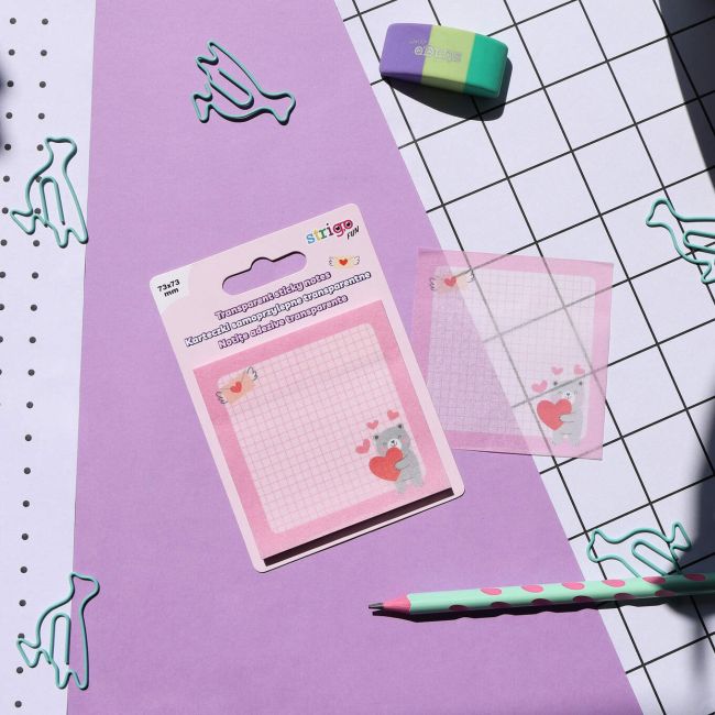 Transparentne karteczki samoprzylepne STRIGO 73x73mm 50 kartek różowe