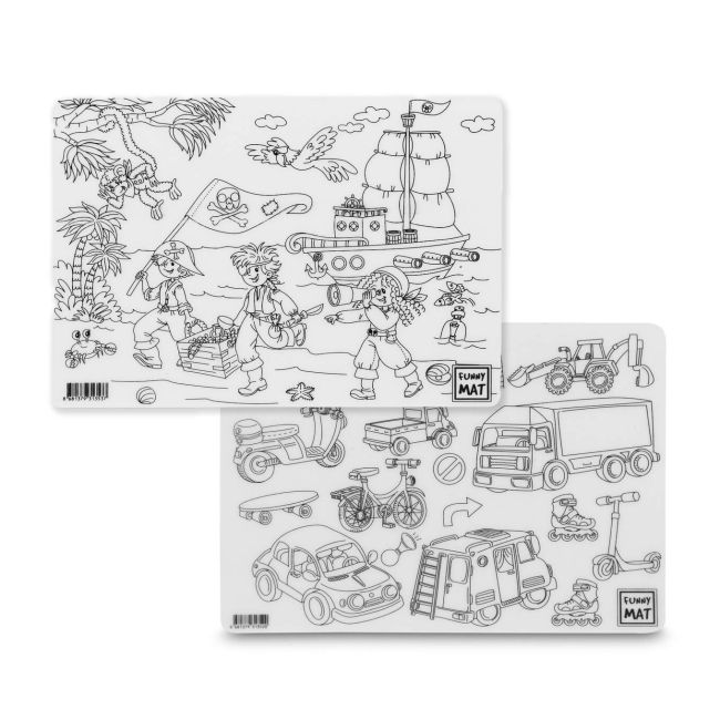 Zestaw 2 szt. Transparentna mata Strigo by Funny Mat Piraci + Pojazdy 25 x 35 cm + flamastry