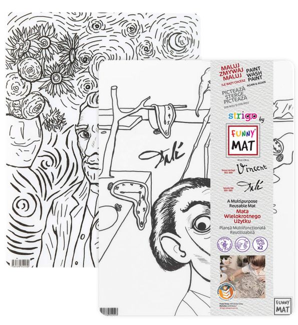 Zestaw 2 szt. Transparentna mata Strigo by Funny Mat Van Gogh + Dali 30 x 40 cm + flamastry