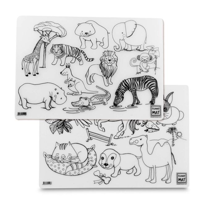 Zestaw 2 szt. Transparentna mata Strigo by Funny Mat Zwierzęta domowe + Dzikie 33,5 x 48 cm + flamastry