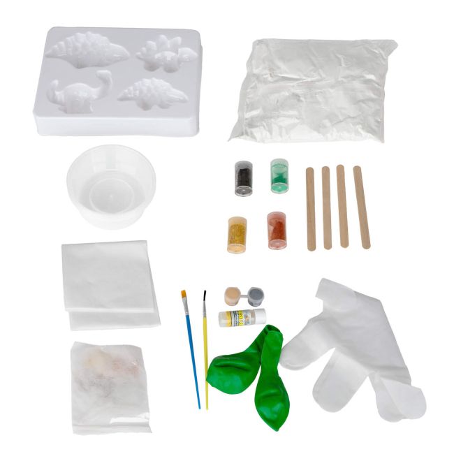 Zestaw zawiera wszystko, czego potrzeba: magiczny cement, plastikowe formy dinozaurów, pigmenty, pędzelek, paletkę, miseczkę, mieszadło. Dzięki przejrzystej instrukcji dzieci mogą krok po kroku tworzyć własne dzieła, ucząc się przy tym cierpliwości i precyzji. Cały proces jest bezpieczny, zapewniając dzieciom swobodę w tworzeniu.