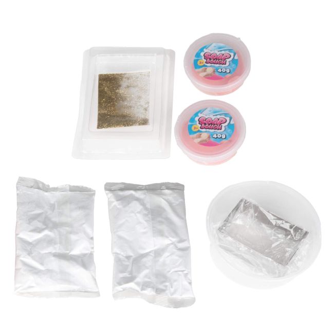 W zestawie znajdziesz wszystko, co potrzebne do stworzenia pięknych i bezpiecznych dla skóry mydełek – masę mydlaną, foremki, pędzelek, mieszadło, preparat zabezpieczający, miseczkę, wodoodporną matę oraz rękawiczki.