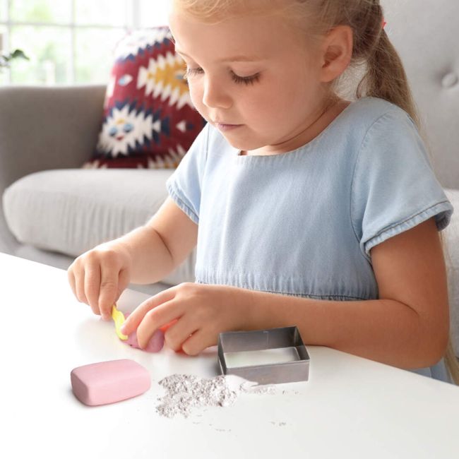 Zestaw Strigo zapewnia doskonałą zabawę i wspiera rozwój kreatywności oraz zmysłów. Dzięki różnorodnym kolorom i fakturom, dzieci mogą tworzyć unikalne mydełka, które cieszą oko i zmysł dotyku. Wystarczy wymieszać masę, przełożyć do foremki, a po wyschnięciu cieszyć się pięknym, pachnącym i błyszczącym mydełkiem, ozdobionym własnym projektem!