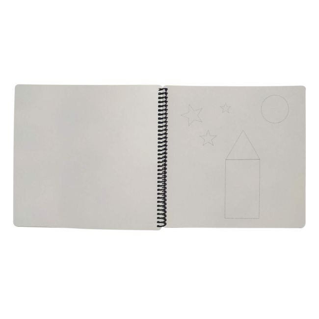 W zestawie znajduje się 6 różnych stron, które można zmyć. Pierwsza strona została pozostawiona pusta do kreatywnych działań.