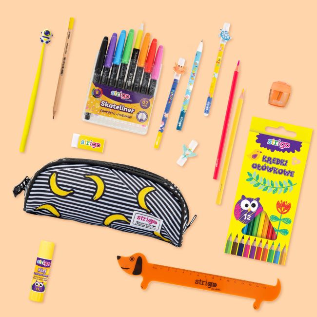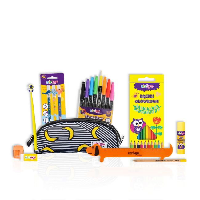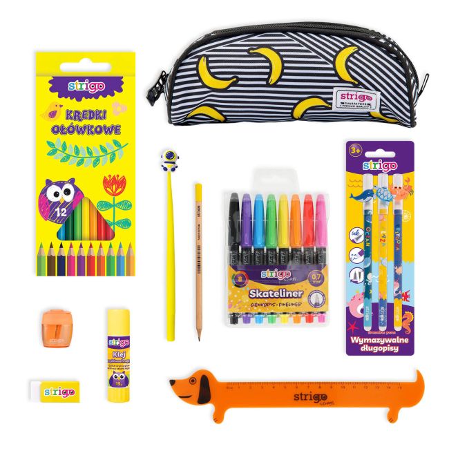 Zestaw Wyposażenia Piórnika STRIGO – Wyprawka Szkolna 10 Elementów dla Ucznia