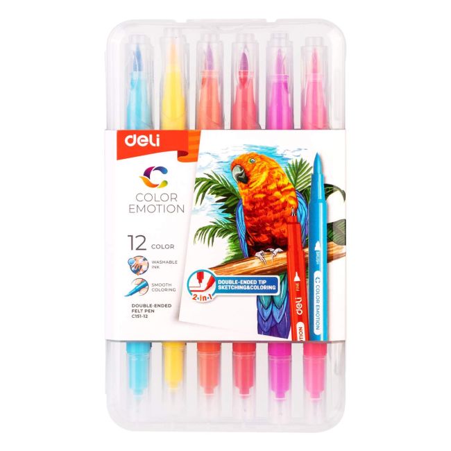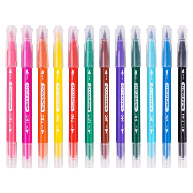 Zmywalne, dwustronne flamastry DELI 12 sztuk