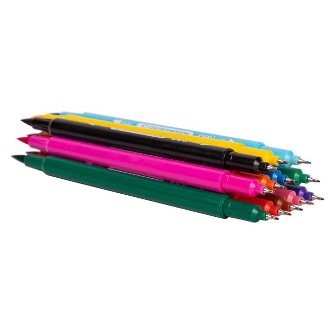 - Flamastry 2 w 1: cienka końcówka do rysowania linii i szkicowania , oraz druga gruba końcówka flamastra do kolorowania dużych powierzchni